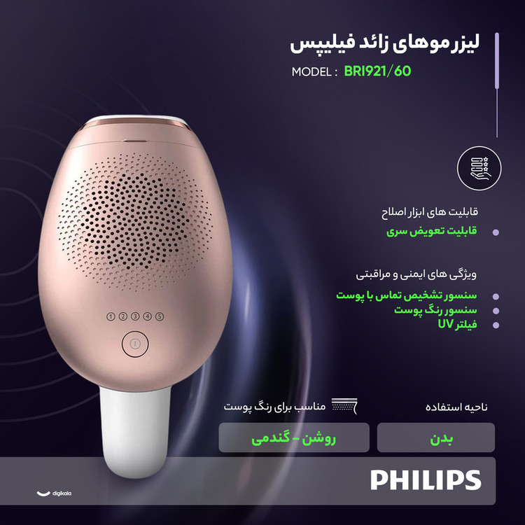 مجموعه اصلاح لومه آ BRI921 فیلیپس، یک پک کامل و کاربردی است که شامل دستگاه لیزر مدل SC1997 و تریمر مدل HP6388 میشود. دستگاه لیزر بدن این مجموعه بر پایه فناوری IPL کار میکند و دارای ۵ سطح تنظیم انرژی و حداقل ۲۵۰,۰۰۰ پالس نوری است که امکان حذف موهای زائد در نواحی مختلف بدن مثل دست، پا، شکم، زیر بغل، ناحیه بیکینی و صورت را فراهم میکند. این دستگاه فقط با اتصال مستقیم به برق کار میکند و فاقد باتری است. همراه دستگاه، دو سری ارائه میشود: یک سری بزرگ مخصوص بدن و یک سری مخصوص صورت با فیلتر اضافی که به افزایش دقت و ایمنی کمک میکند. تریمر HP6388 این ست، برای اصلاح دقیق موهای صورت و همچنین مرتب کردن ابروها مناسب است. این تریمر دارای ابعاد کوچک و قابل حمل بوده و با یک باتری نیم قلمی (AAA) تغذیه میشود. همچنین یک شانه اضافه همراه آن قرار دارد که امکان کوتاه کردن ابروها را راحتتر میکند. این مجموعه برای افرادی که به دنبال یک راهکار کامل و مقرونبهصرفه برای حذف موهای زائد و اصلاح صورت هستند، گزینهای ایدهآل به شمار میآید.