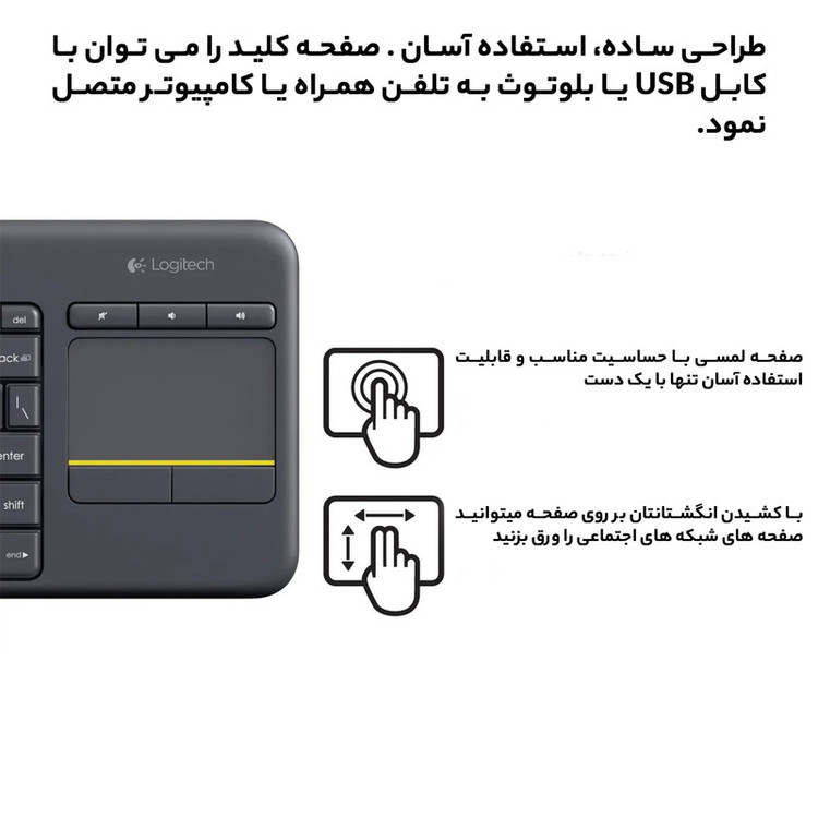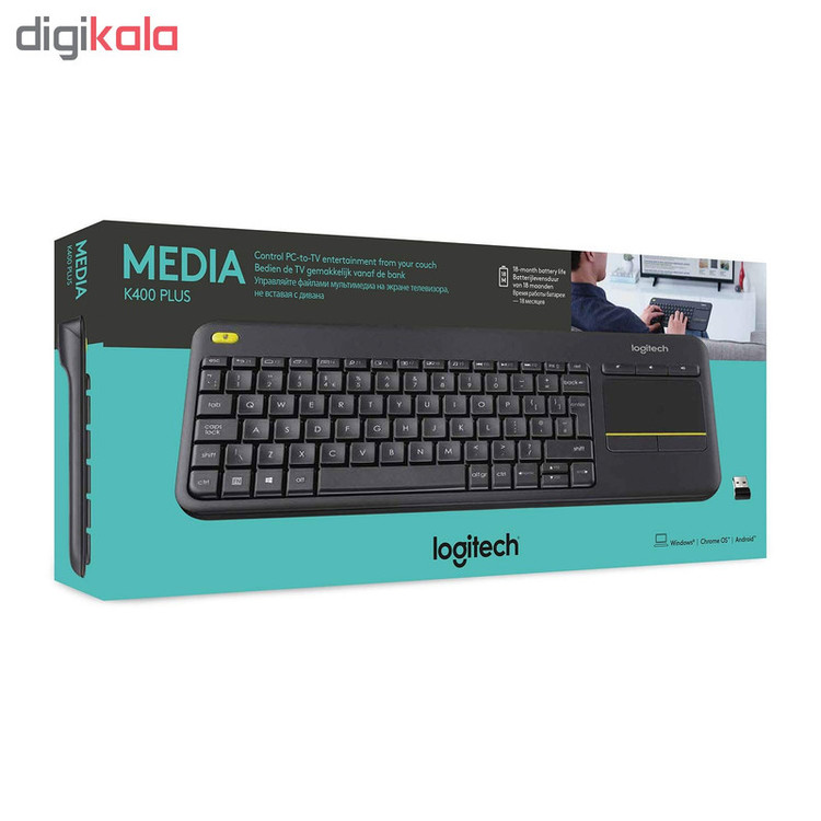 کیبورد «K400 Plus» محصولی از شرکت «لاجیتک» است که از طریق دانگل USB به رایانه شما متصل میشود و میتواند بهعنوان یک دستیار حرفهای برای کار با رایانه باشد. این کیبورد دارای 83 کلید بهاضافهی 16 کیلد میانبر است. در سمت راست کیبورد K400 Plus یک تاچ پد تعبیهشده که حس کار مشابه با لپتاپ را به کاربر منتقل میکند. در بالای تاچ پد سه کلید برای کنترل صدا در رایانه مشاهده میشود که میتواند بسیار کاربردی باشد. کیبورد لاجیتک مدل K400 Plus انرژی خود را از دو باتری آلکالاین سایز AA تأمین میکند که به یاری آن میتوان تا 18 ماه از کیبورد استفاده کرد. تاچ پد ارائهشده روی کیبورد K400 Plus از فرمانهای چند لمسی پشتیبانی میکند. کلیدهای کیبورد لاجیتک مدل K400 Plus در فاصلهی کمی از هم قرار گرفتهاند که این موضوع باعث شده که این کیبورد ابعاد کوچکتری نسبت به محصولات دیگر داشته باشد. جنس بدنهی K400 Plus از پلاستیک باکیفیت است که میتواند در برابر بسیاری از صدمات روزمره مقاوم باشد. برچسب چاپی روی کلیدهای کیبورد K400 Plus از کیفیت چاپ خوبی بهره میبرند و بهجرئت میتوان گفت که هیچگاه از بین نمیروند. اگر قصد تهیهی یک کیبورد با ابعاد و کیفیت مناسب را دارید، K400 Plus میتواند انتخاب خوبی باری شما باشد.