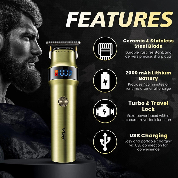 ماشین اصلاح VGR مدل V-991 یکی دیگر از محصولات پرقدرت و حرفهای برند VGR است که با طراحی مدرن و امکانات بهروز، برای اصلاح دقیق و راحت موهای سر و صورت مناسب است. این دستگاه مجهز به باتری لیتیومی 2500 میلیآمپر ساعتی است که پس از 3 ساعت شارژ کامل، امکان استفاده مداوم تا 300 دقیقه را فراهم میکند.
