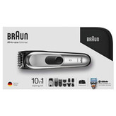 ست ماشین اصلاح موی صورت و بدن براون مدل mgk7920 در سال 2019 تولید شد و به عنوان قدرتمندترین ماشین پیرایشگر در دنیا شناخته میشود. این دستگاه با یک باتری لیتیوم یون قدرتمند با ظرفیت 2000 میلیآمپر تجهیز شده است و بدنه آن با فلز پوشش داده شده است. همچنین، تیغه این محصول از جنس استیل ضد زنگ با تکنولوژی تیز شونده ساخته شده است که بسیار برندگی دارد. این ماشین اصلاح دارای 10 عدد وسیله قابل نصب بر روی دستگاه است، هر کدام از این وسایل وظیفههای گوناگونی را برعهده دارند. در واقع، تقریباً هر آنچه که از یک ماشین صورت تراش انتظار دارید، در این دستگاه وجود دارد. براون برای تکمیل این پروژه و ارائه این محصول، از تجربه 70 ساله مهندسان خود بهره برده است تا کارایی بیشتری را به ارمغان آورده باشد. علاوه بر این، قطعات مربوط به ماشین اصلاح وارد یک کیف هارد کیس محکم شده است که مناسب برای سفر یا نگهداری بلند مدت است. این کیف، در فشارهای زیاد محکم و قابل اعتماد بوده و قابلیت قراردادن قطعات درون آن را دارد. این ست شامل قطعه ماشین بدن زن است که دارای یک تریمر دو لبه و شیور است و قادر به شیو کردن و برداشتن موهای بدن آقایان میباشد. همچنین، قطعه مینی شیور (ریش تراش کوچک) نیز در این مدل وجود دارد که توانایی تراشیدن نواحی خاص مثل ریش پروفیسوری و استایل های مختلف را دارد. از مزایای این دستگاه نسبت به رقبا میتوان به باتری لیتیوم یون قدرتمند و مقاوم در برابر آب و حرارت، تیغه کاملاً فلزی و رنگ نقرهای که کثیفی را کمتر نشان میدهد و همچنین کیف هارد کیس با قابلیت جاگذاری قطعات اشاره کرد.