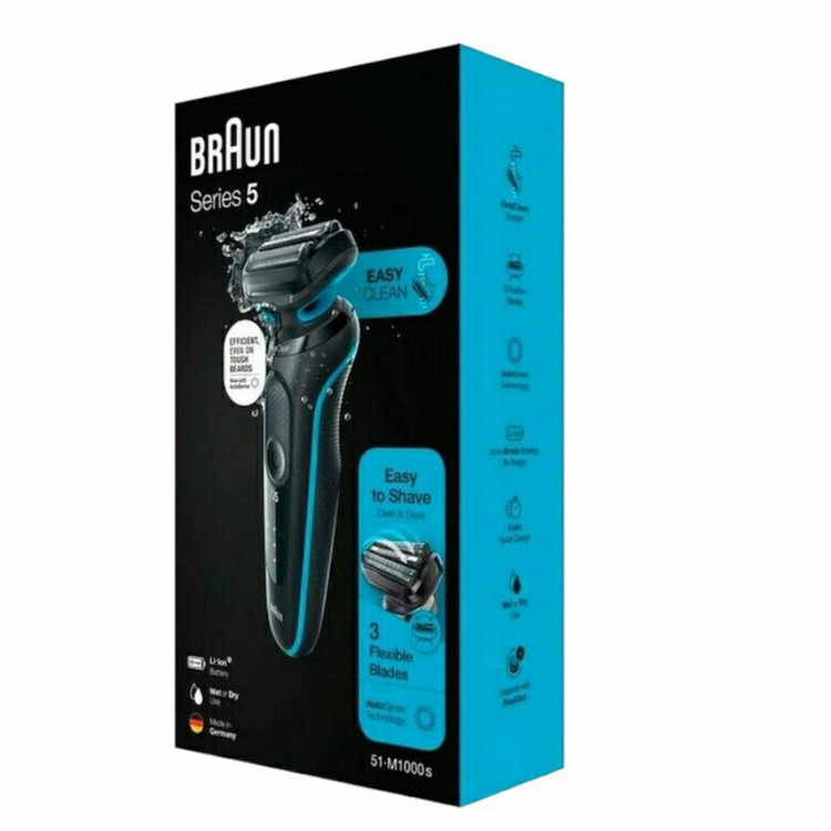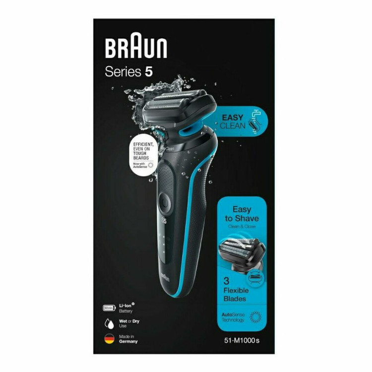 ریش تراش براون مدل 51M1000s با 3 عدد تیغه انعطاف پذیر به طور روان با خطوط صورت شما سازگار است. بیشترین سازگاری را با ریش شما پیدا می کند. در حالی که سیستم EasyClean تمیز کردن سریع و ساده را امکان پذیر می کند- بدون نیاز به برداشتن سر ماشین اصلاح. کارآمد حتی برای ریش های سخت. ریش تراش براون مدل 51M1000s با تکنولوژی AutoSense تراکم ریش شما را اندازه گیری می کند و قدرت را با تراکم ریش شما تطبیق می دهد، و در هر اصلاح موهای بیشتری را می گیرد و کوتاه می کند. فناوری AutoSense اسکن می کند و با تراکم ریش شما سازگار می شود. به راحتی با فرم صورت و تراکم ریش شما می تواند سازگاری پیدا کند. این قابلیت باعث می شود که حساسیت در ناحیه زیر گردن ایجاد نشود و حساسیت را به مرور از بین می برد. همچنین قدرت بی نظیر 24 هزار برش در دقیقه کارایی عالی را به شما ارائه می کند. سرعت بیشتر اصلاح در مقایسه با مدل های قبل تر براون. سرعت بیشتر اصلاح همراه با نهایت دقت یعنی زمان کمتر اصلاح، زمان کمتر یعنی جلوگیری از ایجاد حساسیت، کاهش حساسیت یعنی اصلاح ملایم و ایده آل می باشد. ریش تراش خود را بدون برداشتن سری آن تمیز کنید. راحت ترین روش تمیز کردن و شستشوی ریش تراش در سری 5 براون. کافی ست دستگاه را زیر جریان شیر آب قرار دهید تا آب از طریق عناصر برش در زیر سری اصلاح، جریان پیدا کند و توری ها و تیغه ها را شستشو دهد. این روش شستشوی آسان این امکان را به شما می دهد که هر بار بعد از اصلاح، سری ریش تراش سری 5 براون را به راحتی شستشو دهید.