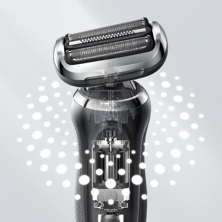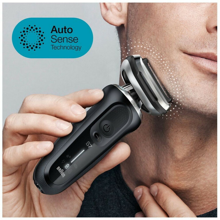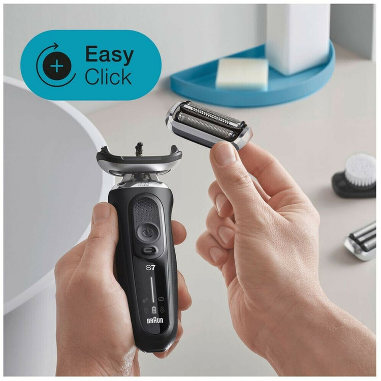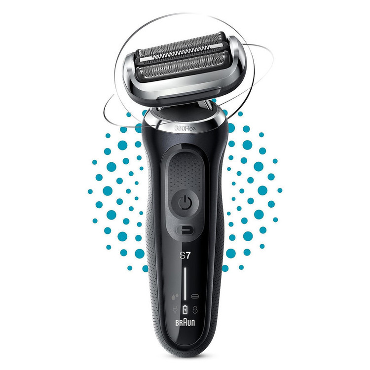 قابلیت و ویژگی برجسته ریش تراش سری 7 در مقایسه با مدل های قبلی براون این است که سری کاملا فلکس یا شناور 360 درجه ای دارد که به راحتی با هر نوع فرم صورتی سازگار می شود و می تواند بهترین و راحت ترین حالت اصلاح را برای شما فراهم کند. همچنین این مدل از سری 7 با تکنولوژی جدید AutoSense ارتقاء یافته است که راحتی و ملایمت دوچندانی در هنگام اصلاح برای شما ایجاد می کند. فناوری جدید AutoSense ریش شما را 13 بار در ثانیه اسکن می کند و با تراکم ریش شما قدرت موتور را سازگار می کند و در هر حرکت اصلاح موهای بیشتری را می گیرد و اصلاح می کند. حتی برای ریش های بسیار متراکم و زبر هم به راحتی بهترین نتیجه اصلاح را ارائه می کند. این تکنولوژی جدید براون در سری 7 همراه قدرت کات 24 هزار در دقیقه، باعث می شود که اصلاح راحت و آسان را در زمان بسیار کم برای شما انجام دهد. سری متحرک و فلکس 360 درجه با تمام قسمت های صورت سازگار می شود تا حداکثر تماس را برای اصلاح نرم تر، حتی در نواحی مشکل صورت ایجاد می کند. سری ریش تراش در تمام جهات متحرک می باشد که هم سری دستگاه و هم سه عدد تیغه فویلی آن بصورت جداگانه انعطاف دارند تا بهترین نتیجه اصلاح را برای شما فراهم کند. سری فلکس 360 درجه سخت ترین نواحی صورت را به راحتی اصلاح می کند دسته جدید ارگونومیک، اصلاحی ملایم را با حرکات ساده و یک طرفه دست امکان پذیر می کند. طراحی ارگونومیک به شما این امکان را می دهد تا حداکثر کنترل را بر روی دستگاه هنگام اصلاح حتی در شرایط مرطوب داشته باشید. این طراحی دقت شما را هنگام اصلاح بسیار بالاتر می برد. یک شارژ کامل ریش تراش سری 7 براون در 60 دقیقه تا 3 هفته (50 دقیقه) اصلاح را برای شما ممکن می کند. همچنین 5 دقیقه شارژ سریع برای اصلاح را نیز دارد.